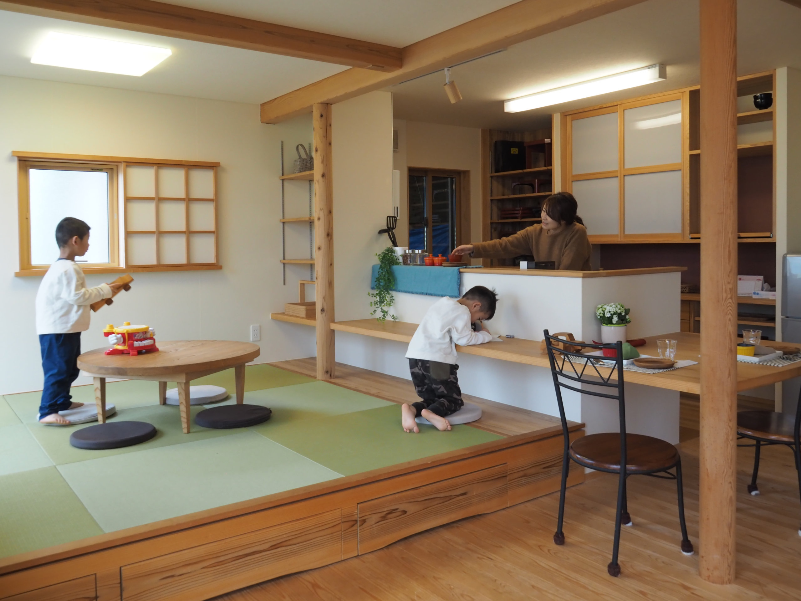 子どもが素足で走り回る、冬もあたたかい自然素材の家。