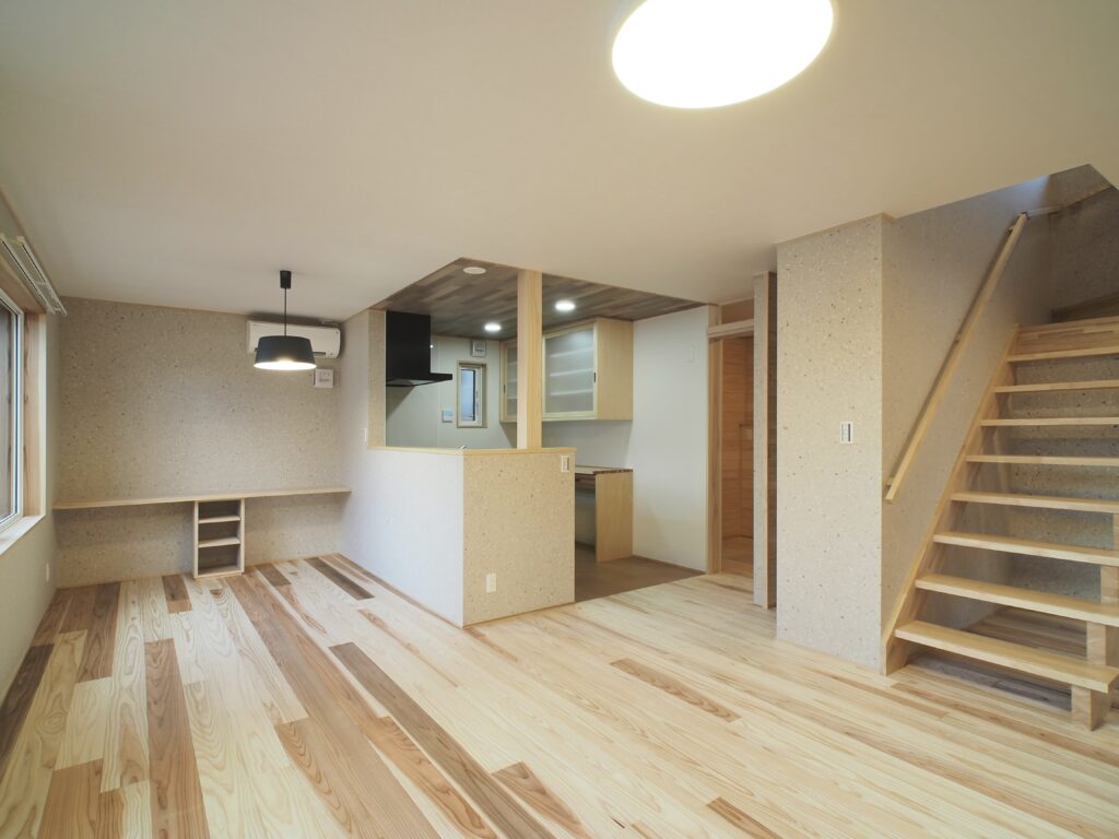 | 内装 | 床:杉フローリング コルクフローリング クッションフロア 壁:えちぜん和紙 ビニールクロス 桧板 天井:えちぜん和紙 ビニールクロス 杉板 桧板 |